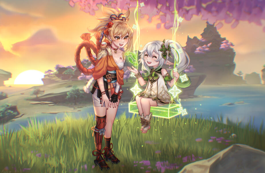 Illustrations with a semi-realistic style. Very detailed and stylized, using lights and vibrant colors.